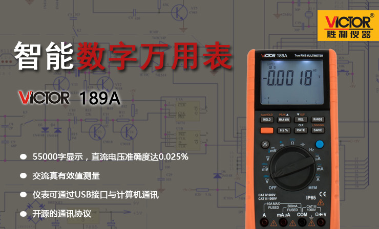 VICTOR 189A是一款可通過設備驅(qū)動軟件實現(xiàn)對儀器的遠地控制的智能手持數(shù)字萬用表