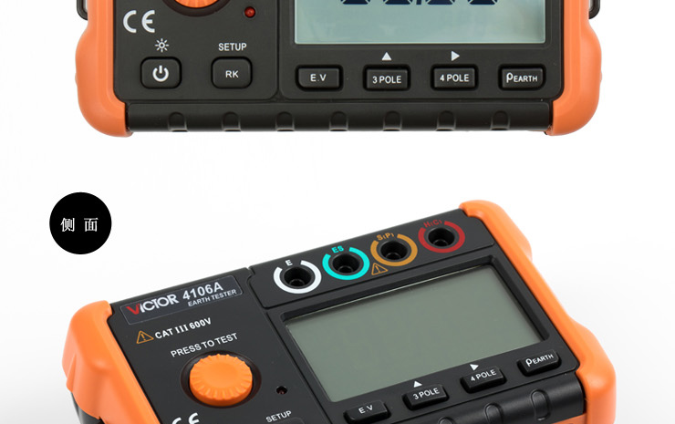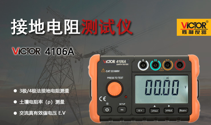 VICTOR 4106A 接地電阻測試儀 產品特點: 1、地電壓測量、3極/4極法接地電阻測量、土壤電阻率(ρ)測量