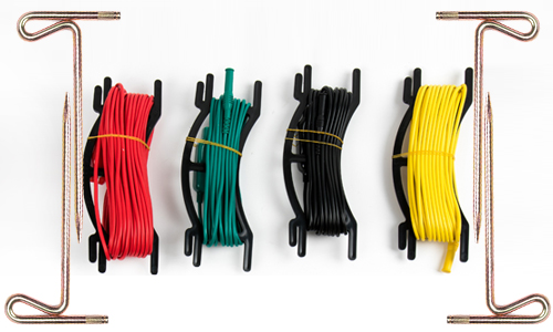 •每個測試引線都卷在一個黑色的架子上