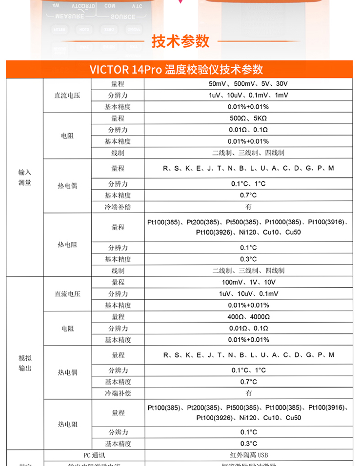 產(chǎn)品名稱:VICTOR 14Pro溫度校驗儀