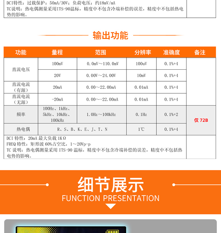 * 直流電壓、直流電流、頻率和熱電偶(僅72B有)
