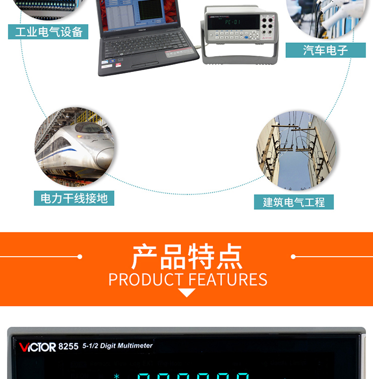 直流電壓、交流電壓、直流電流、交流電流測(cè)量、電阻、電容測(cè)量、頻率測(cè)量通斷、二極管測(cè)試、熱電偶、熱電阻溫度測(cè)量、相對(duì)值測(cè)量(REL_%)、最大值、最小值、平均值測(cè)量(MAX/MIN/AVG)、測(cè)量比較功能(COMP)、測(cè)量值顯示保持(HOLD)功能