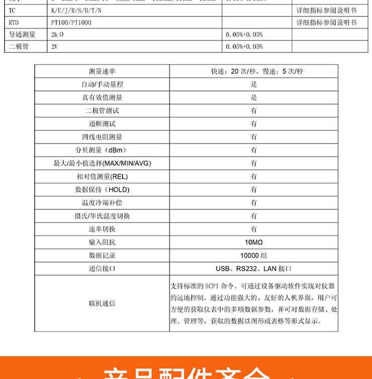 4. 測(cè)量速率包括:慢速(5-1/2位)、快速(4-1/2位)